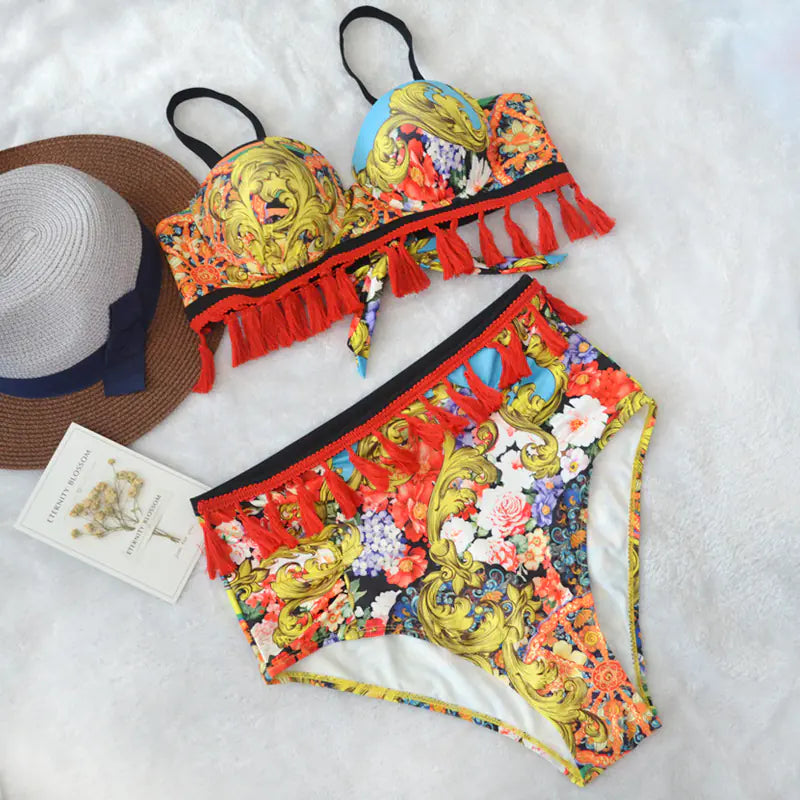 Unleash your inner confidence with our stunning bikini, designed specifically for the modern woman. Perfect for adults who love to flaunt their figure, this stylish swimwear features a captivating floral pattern that embodies freshness and charm.