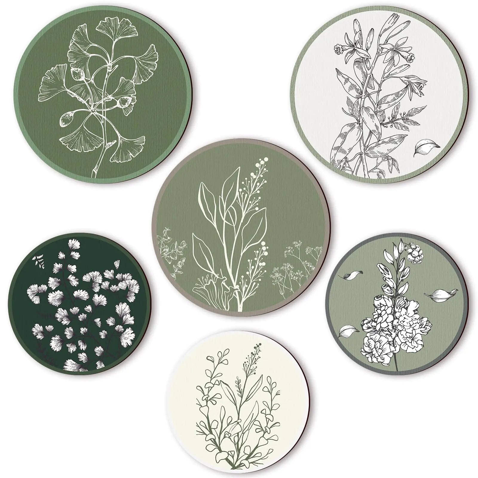 [Intricate Botanical Design in Neutral Tones: the neutral botanical design of our plant pictures wall art beautifully captures a peaceful and calming environment along with soft colors and simple patterns adding a touch of nature right in the heart of your home; The vibrant yet subtle colors are sure to enhance the wall Convenient Sizes for Versatile Decor: offered in 2 sizes with diameters of 8 inches and 10 inches these greenery prints can complement various spaces; Use them as single pieces or put them together; Their sizes will allow for a myriad of decorative possibilities Package Includes: with our package of 6 wooden prints in 2 sizes you can create an eye catching arrangement add layers of depth and charm to your walls with these beautifully crafted pieces enhancing your space with natural elements brought by this fantastic wall decor; Also nice for you to send to others as housewarming gifts Alluring Color Palette: the neutral wall art as depicted in the pictures exudes a calming energy with its neutral and earthy colors whether it be in your living room bedroom or office these pieces can easily complement and enhance your interior design theme "Natures Artistry on Quality Wood: experience the warmth and vibrant beauty of nature in your living space with our vintage wall art crafted from quality wood these decorative pieces beautifully reflect a blend of nature and art ensuring durability and aesthetic appeal thatll win the lovers of nature over"]