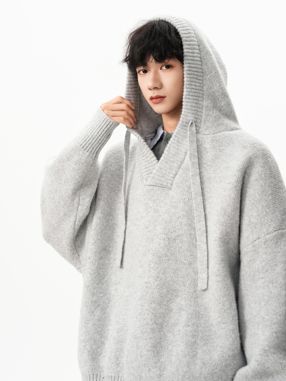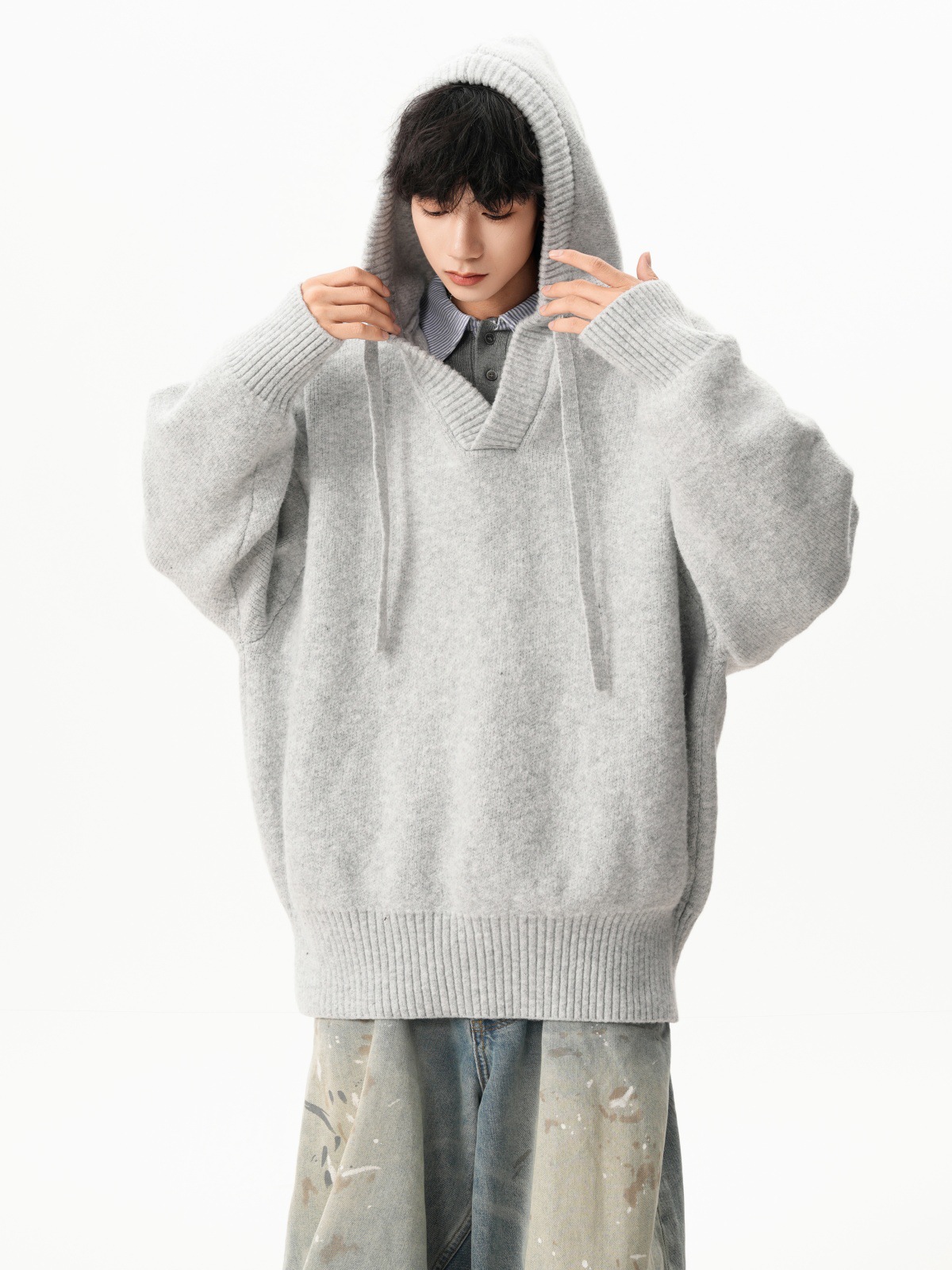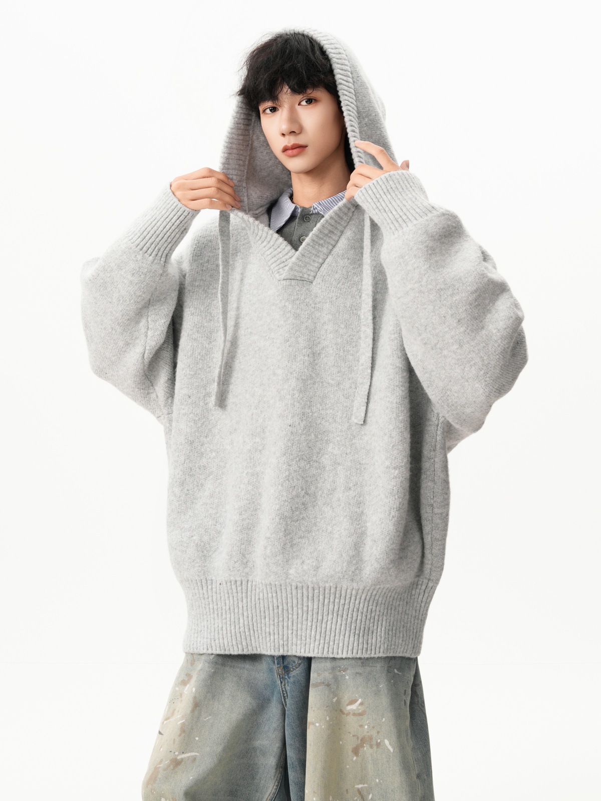 Classic V-neck Hooded Sweater