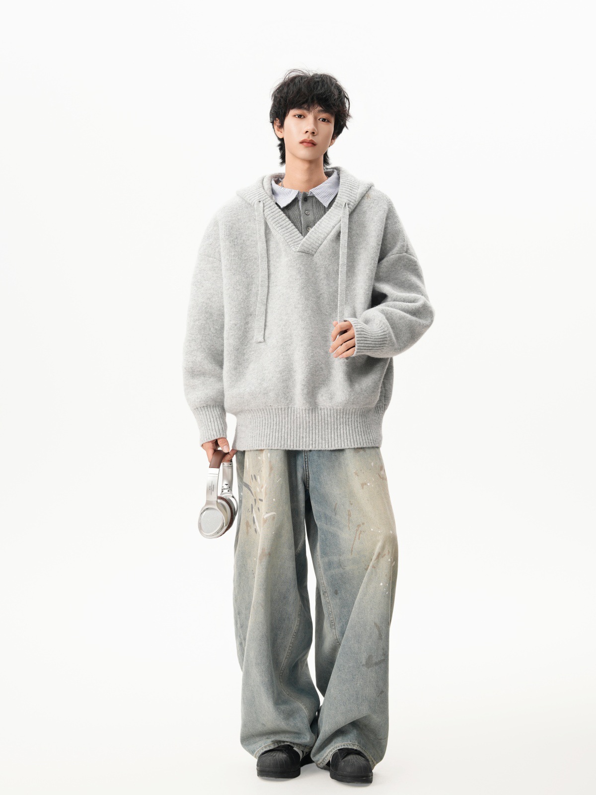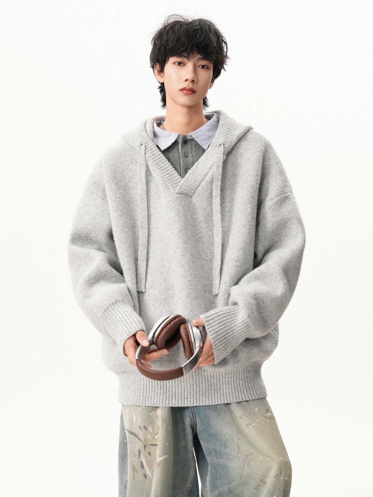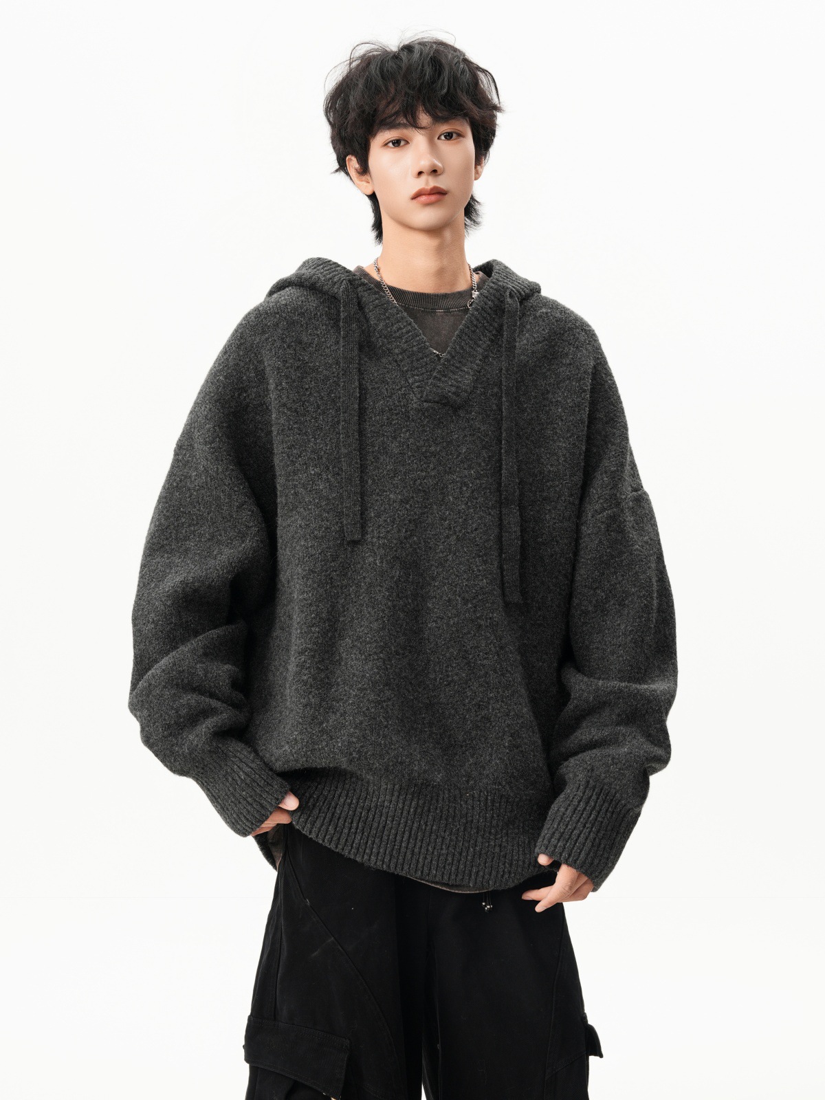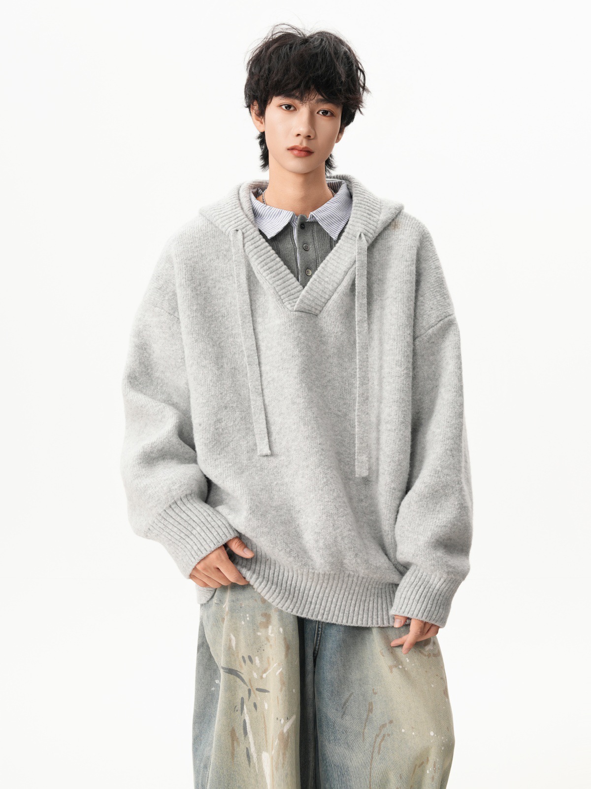 Classic V-neck Hooded Sweater