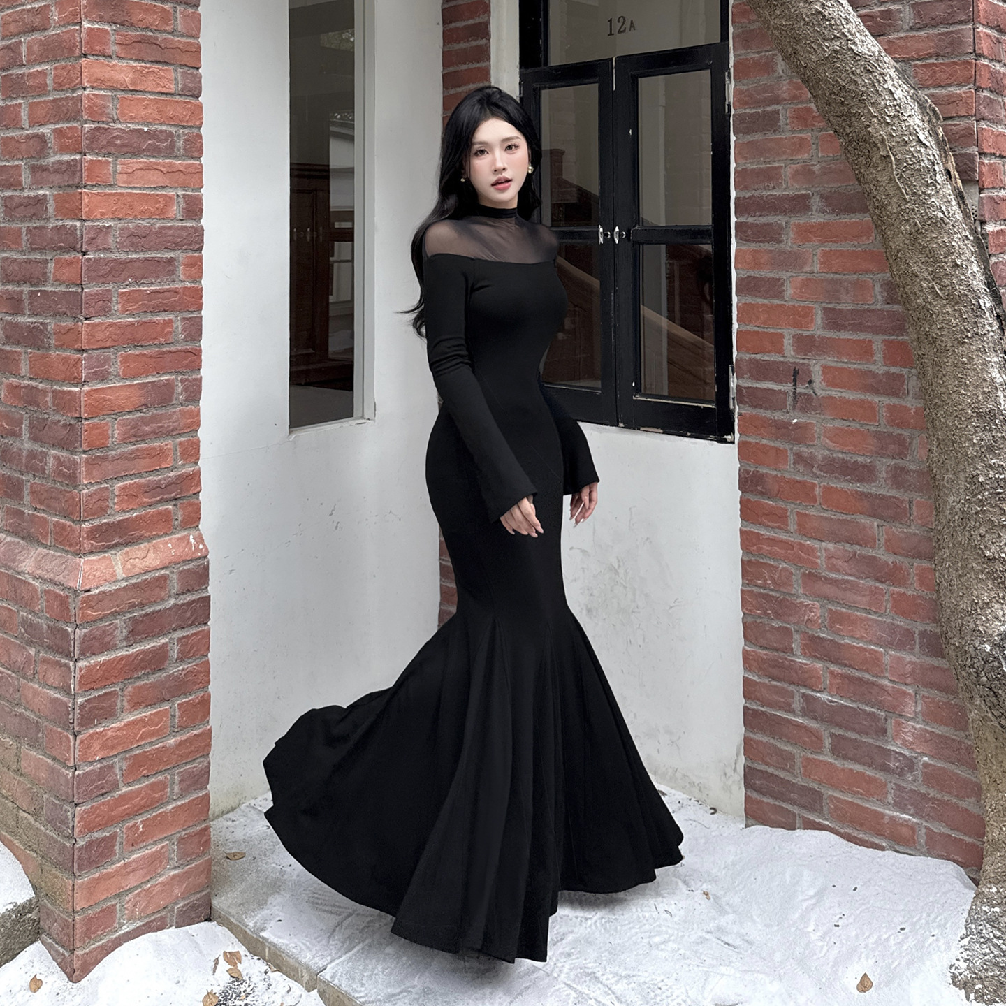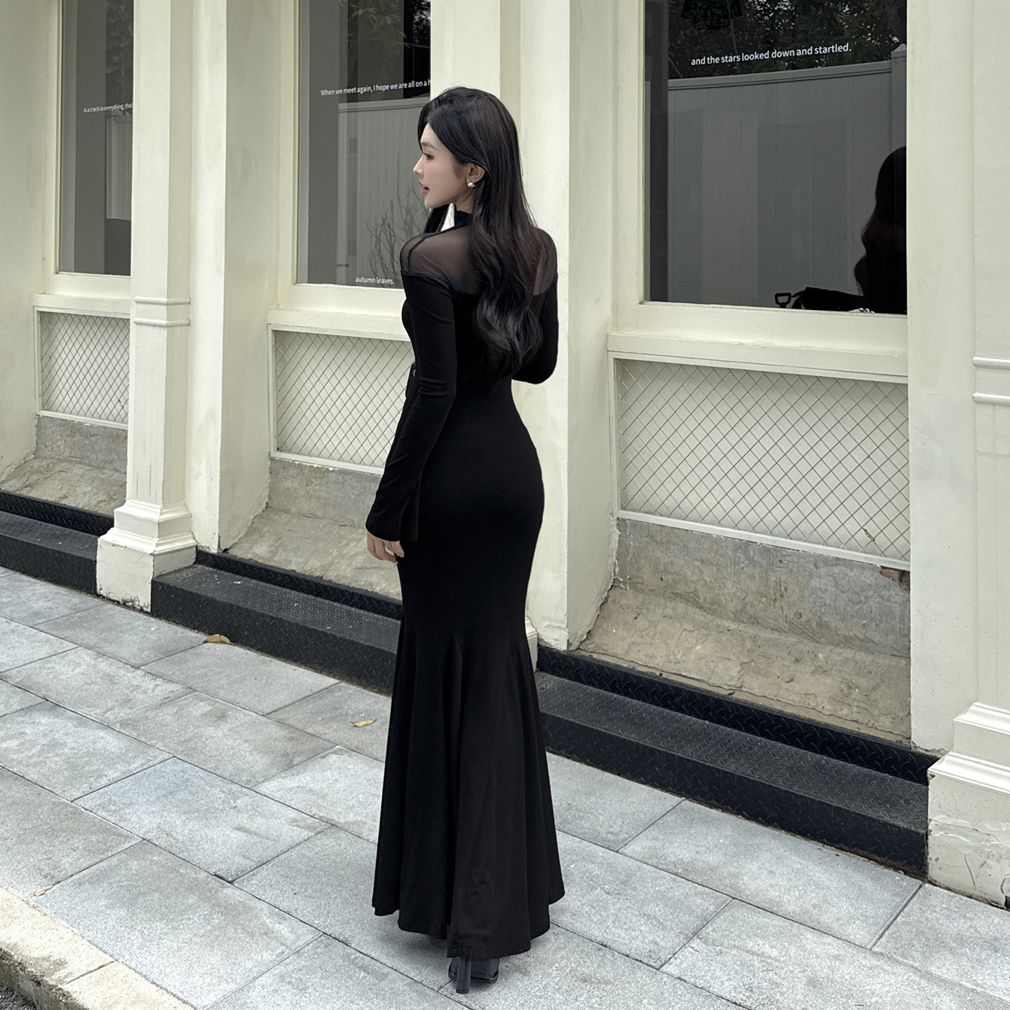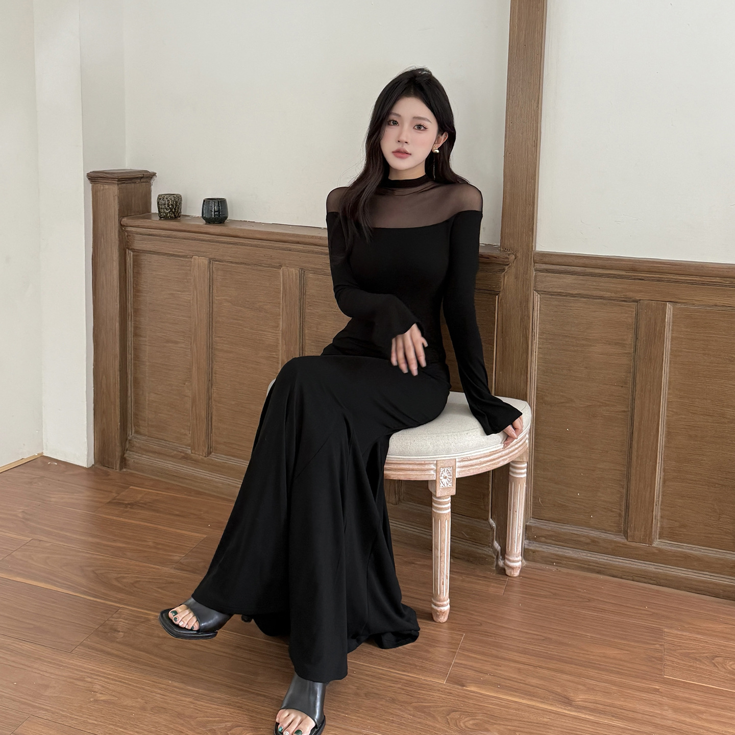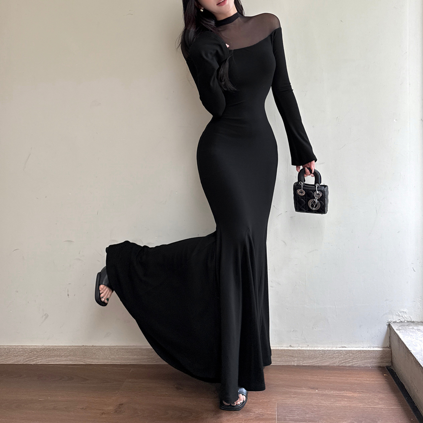 Mesh patchwork sexy spicy girl fish tail dress
