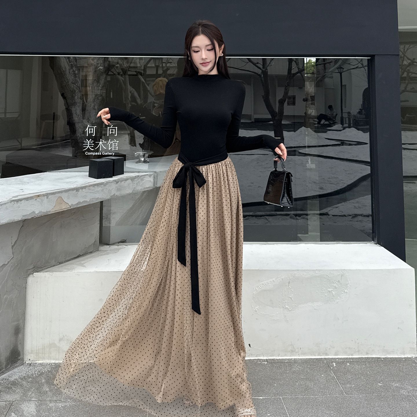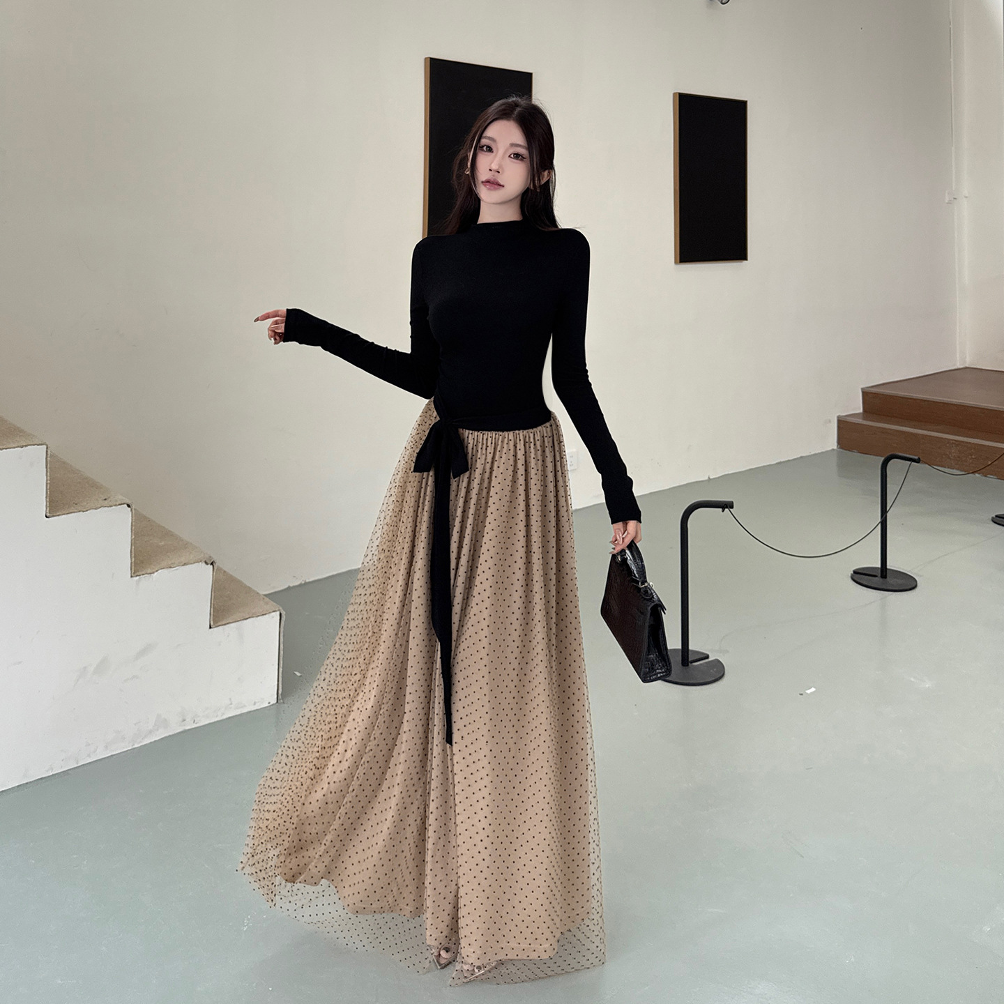 Wave Point French Pure Desire Style Elegant Large A-list Dress